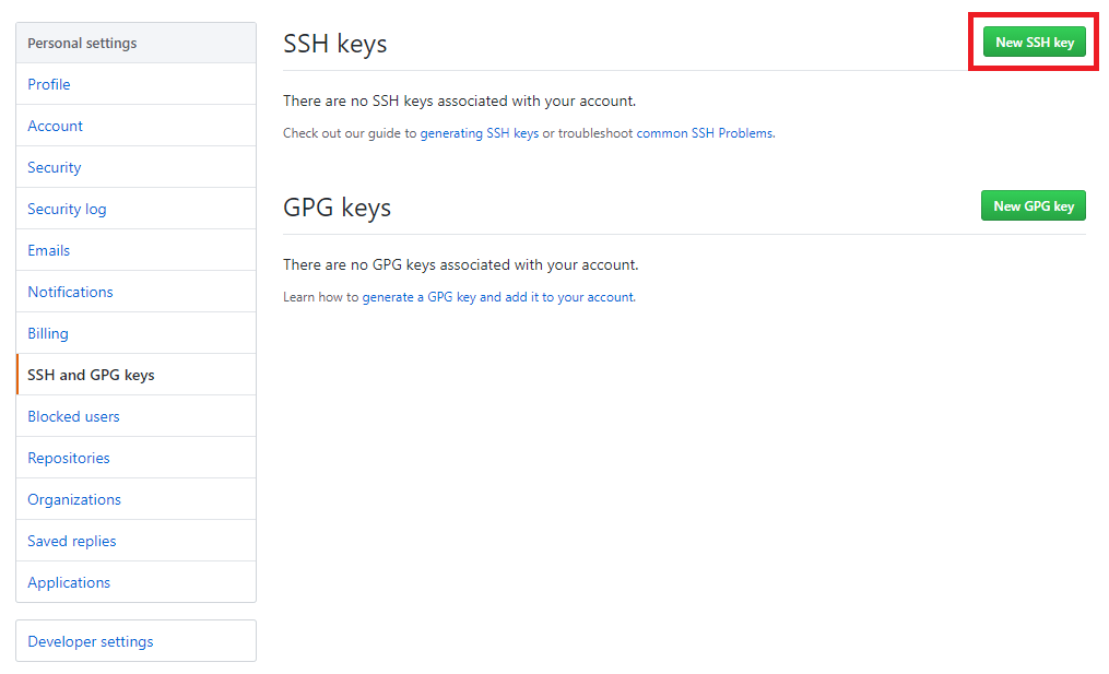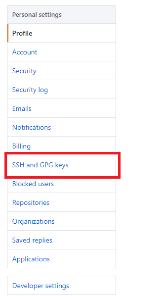 - SSH and GPG keys를 선택한다.