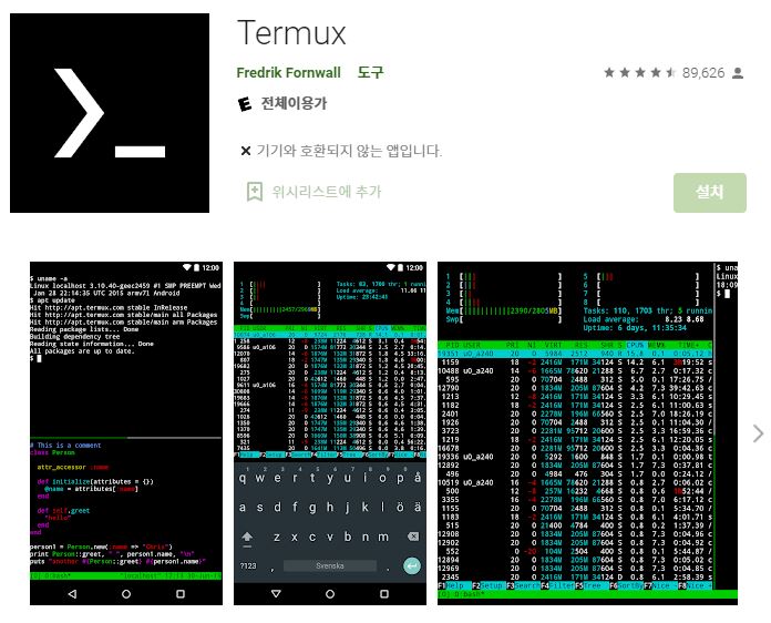 구글플레이 스토어에서 Termux를 앱을 설치한 후 아래 작업을 진행합니다.