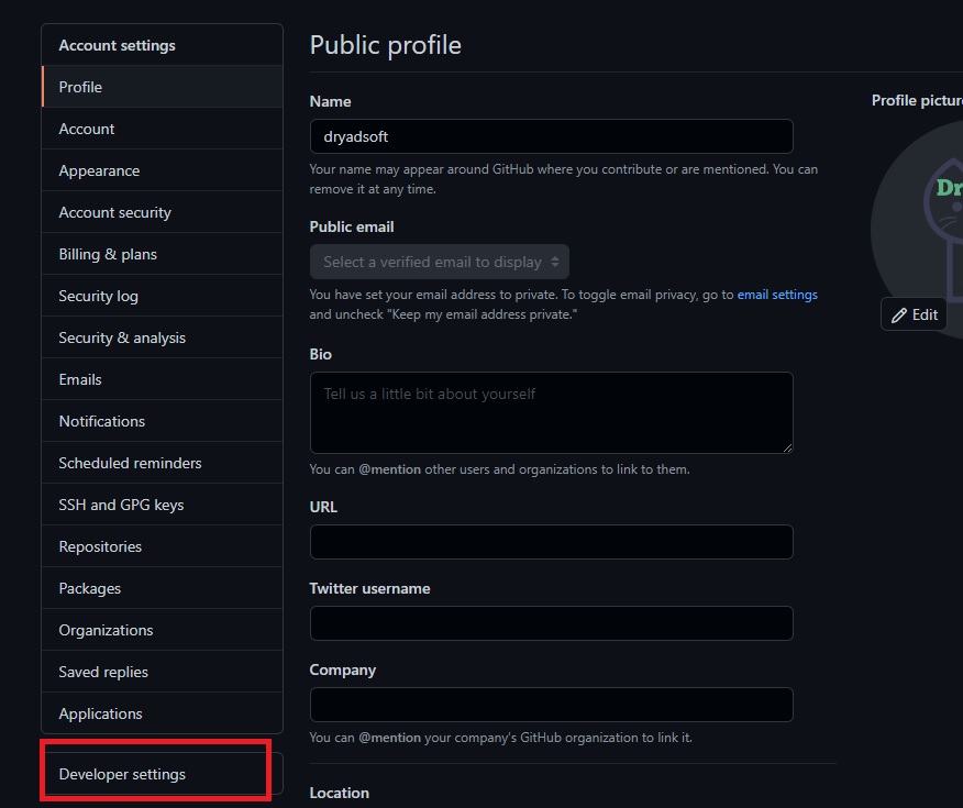 3. 왼쪽하단의 Developer settings 메뉴를 클릭한다.